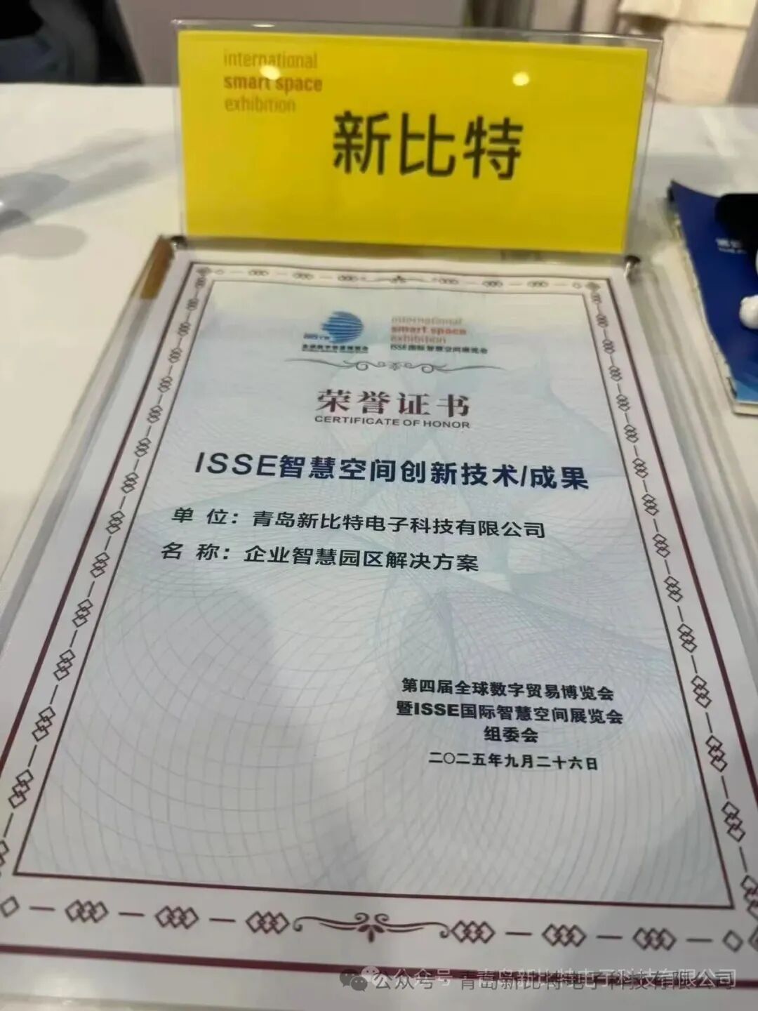 2025年9月26日,从ISSE组委会传来喜讯,青岛新比特电子科技有限公司凭借“企业智慧园区解决方案”在智慧空间建设领域的创新技术与应用成果,成功入选“第四届全球数贸会ISSE智慧空间建设优秀创新成果”。这一荣誉不仅是对公司技术实力的高度认可,更是对公司在智慧城市建设领域贡献的充分肯定。